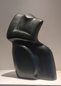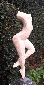 2017Abstract vrolijk figuur gemaakt in Carrara marmer. Samen met een ander beeld 'Bescherm' vormt het een compositie van een zorgeloos, blij figuur en een zorgzaam, beschermend figuur.